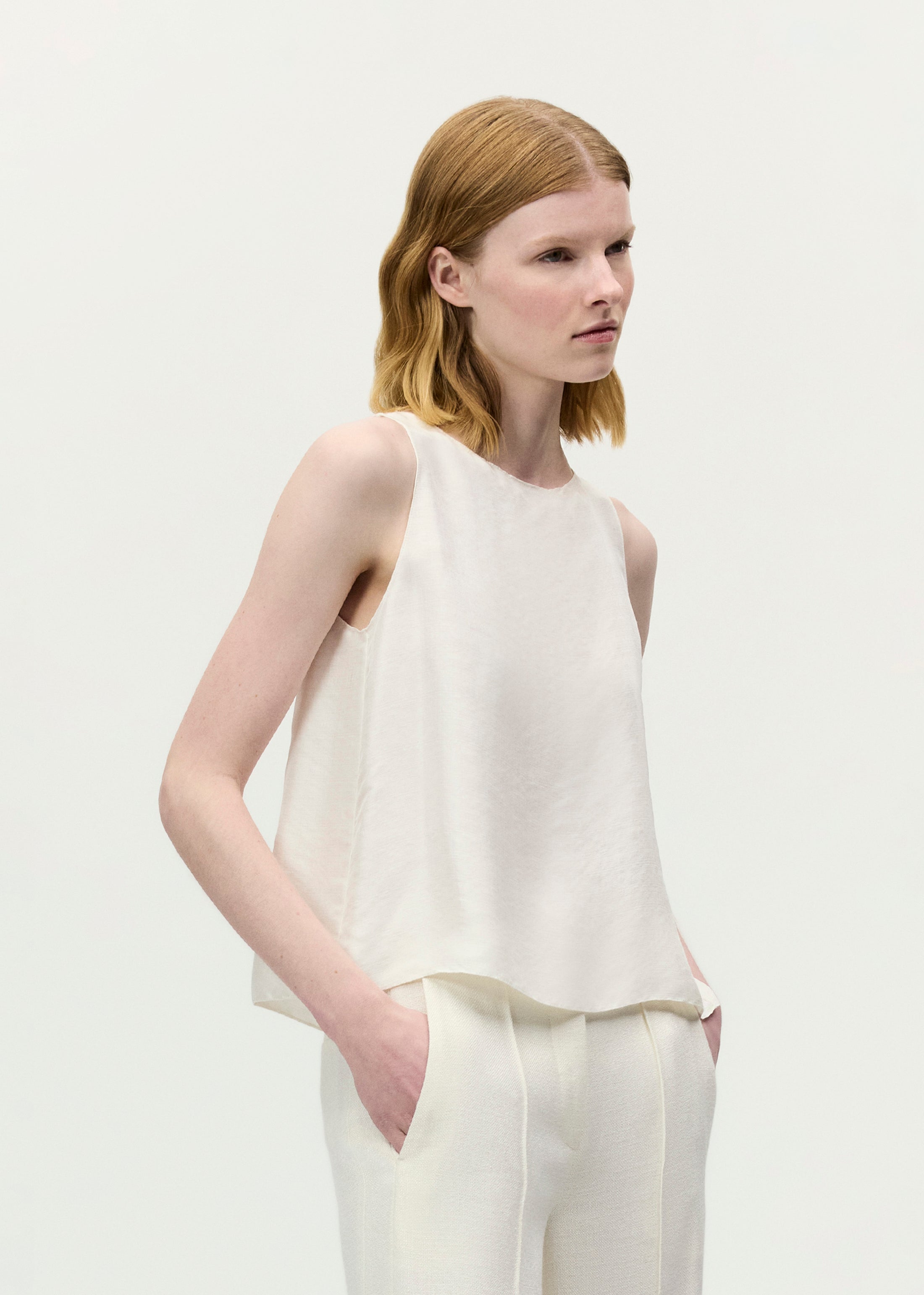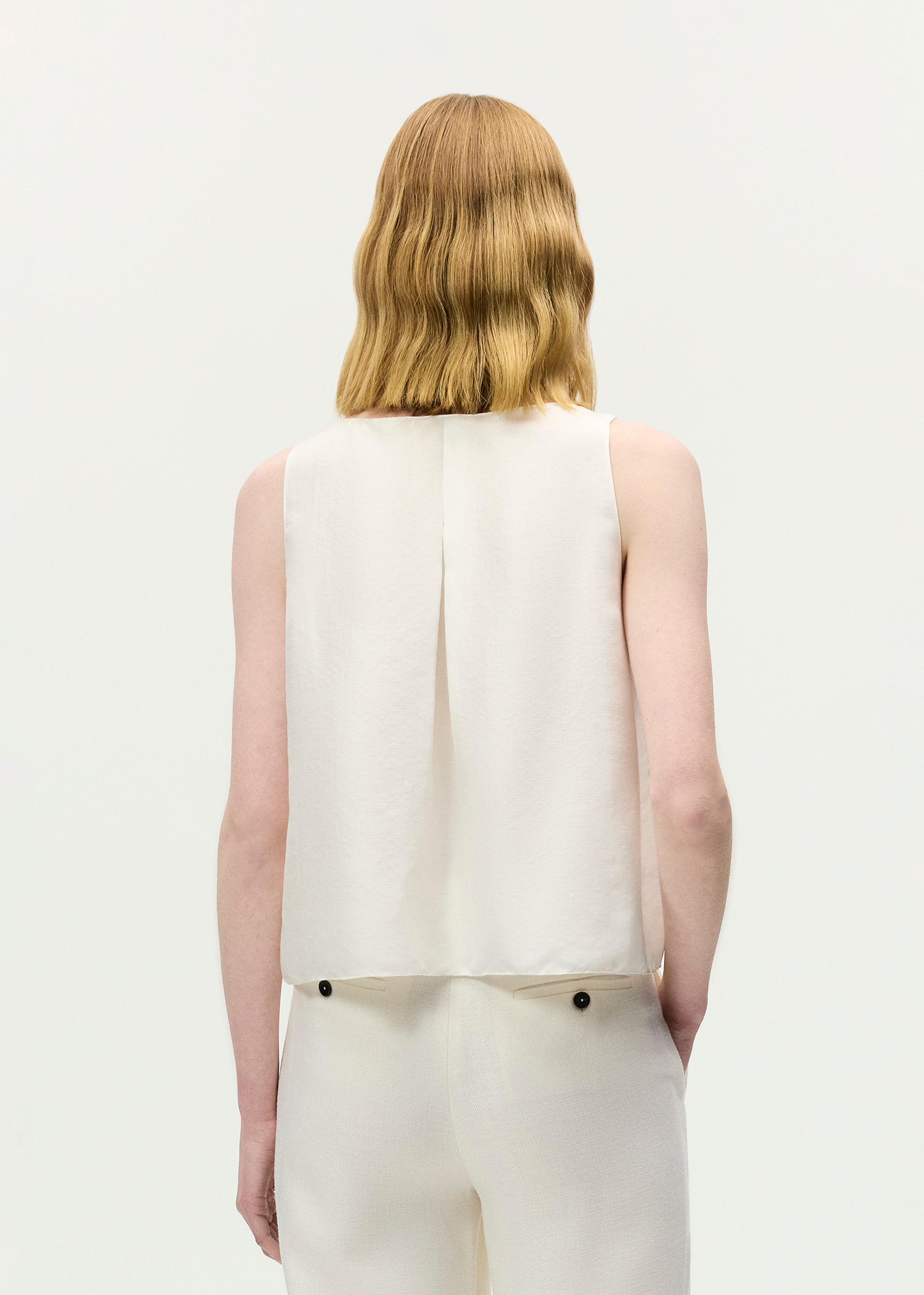 An elegant cropped shell crafted from 100% silk, the Annie Top features box pleating at the back.