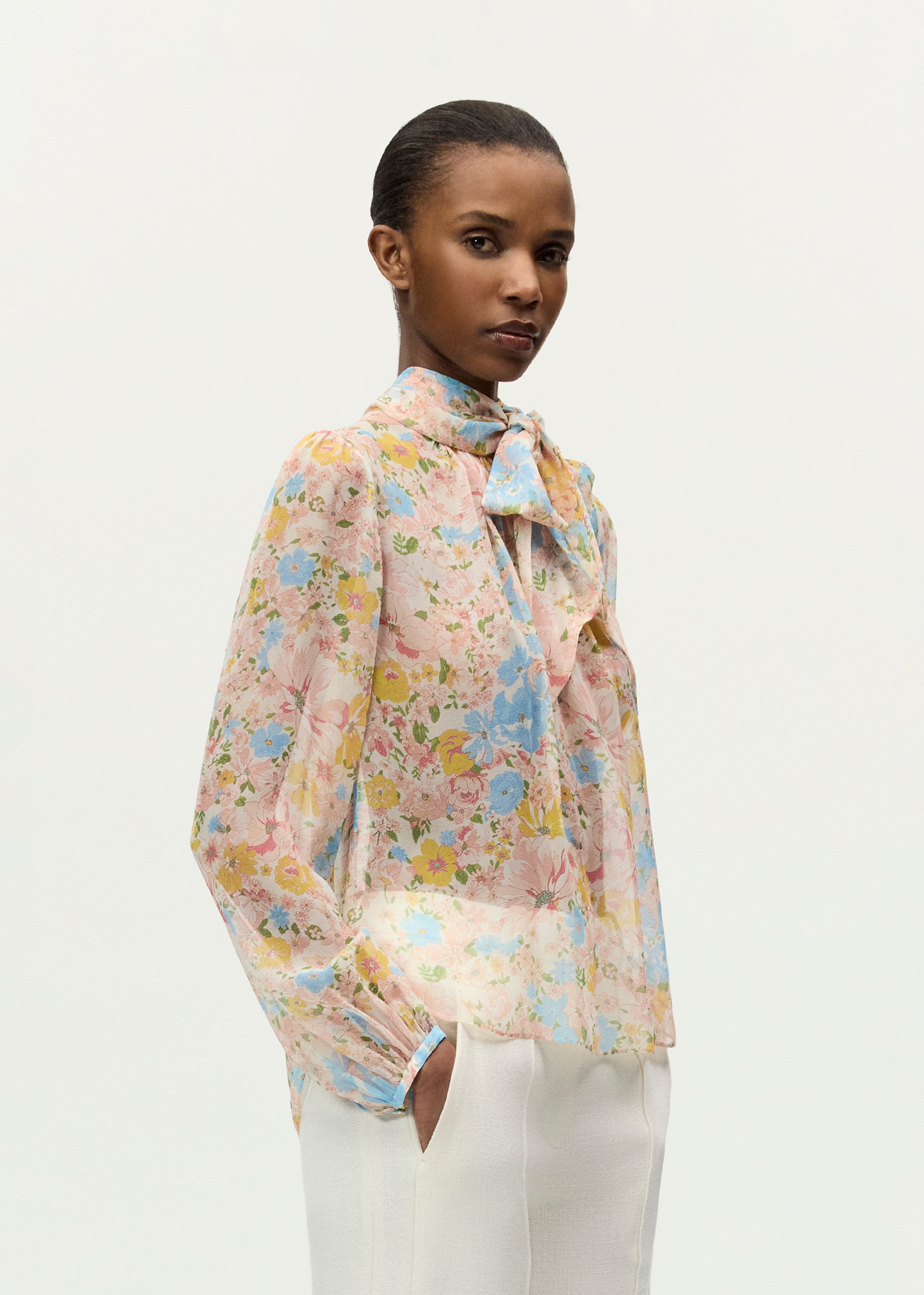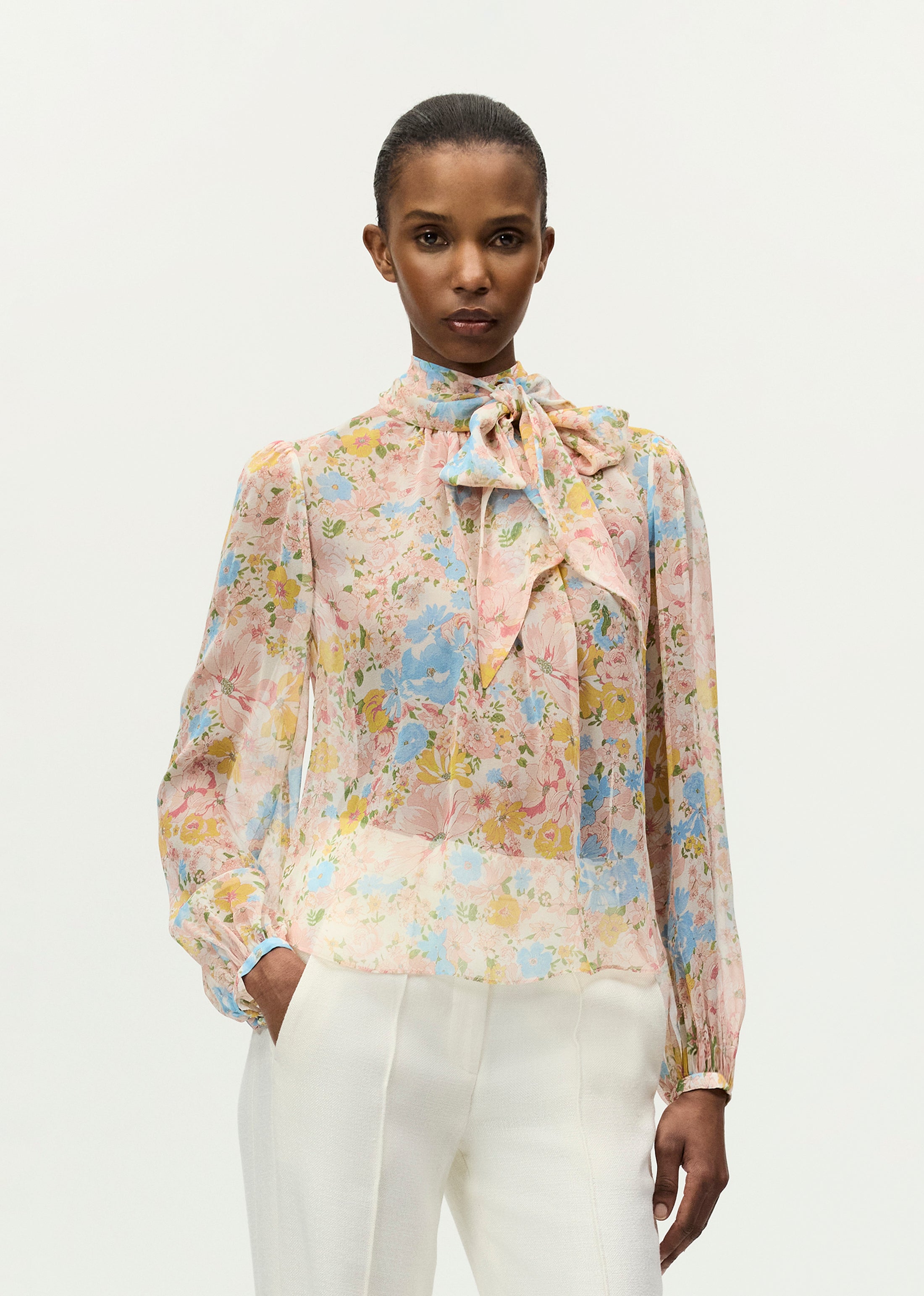 A perennial favorite, the Joan top balances feminine detailing with a sophisticated demeanor. Featuring an elongated scarf that can be removed to reveal a mock-neck, the delicate 100% silk camisole underneath is detachable as well, or can be modified for a personalized fit using diamond-shaped adjusters on the shoulder strap, inspired by our logo. Finished with an invisible zip closure at center back.