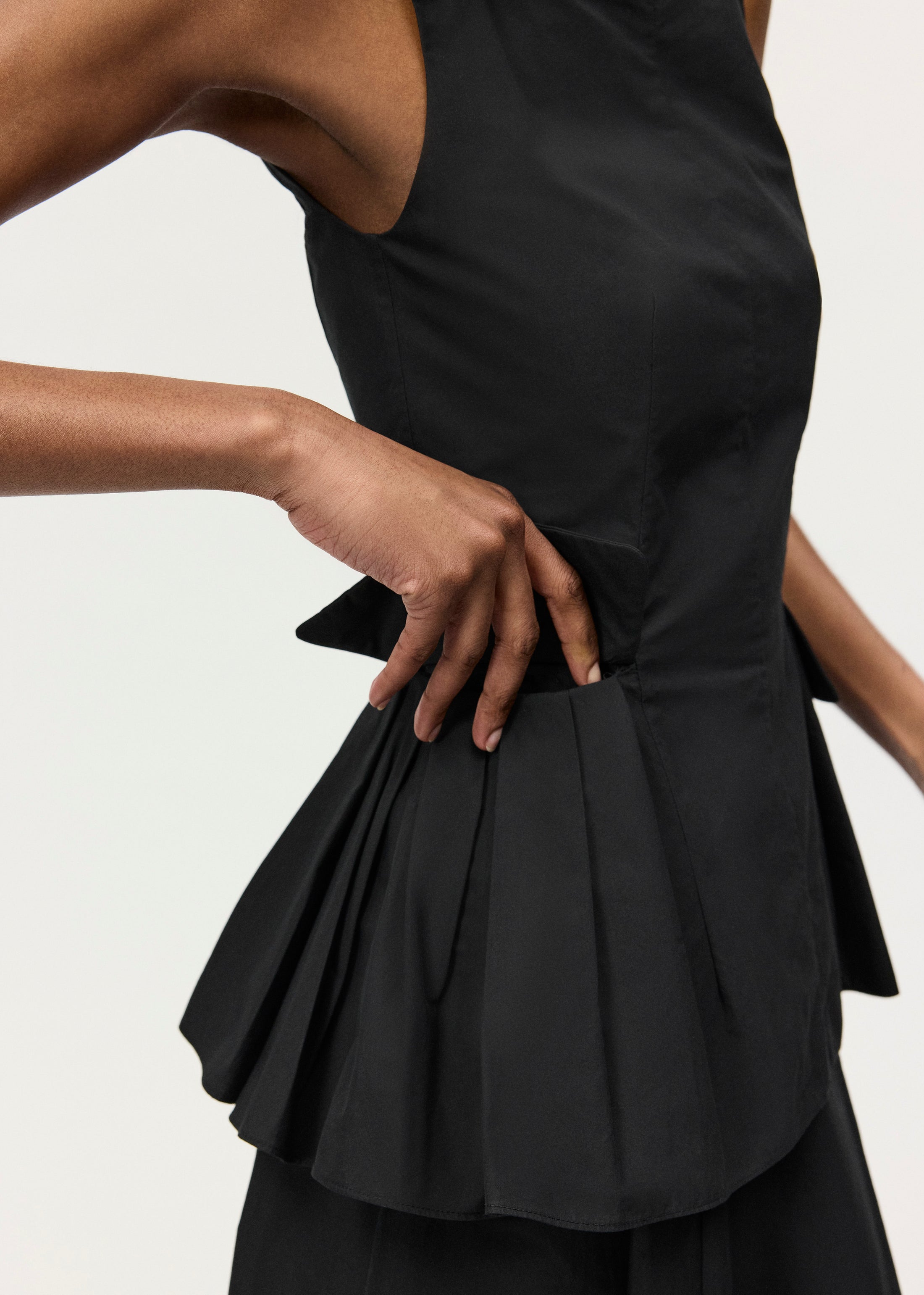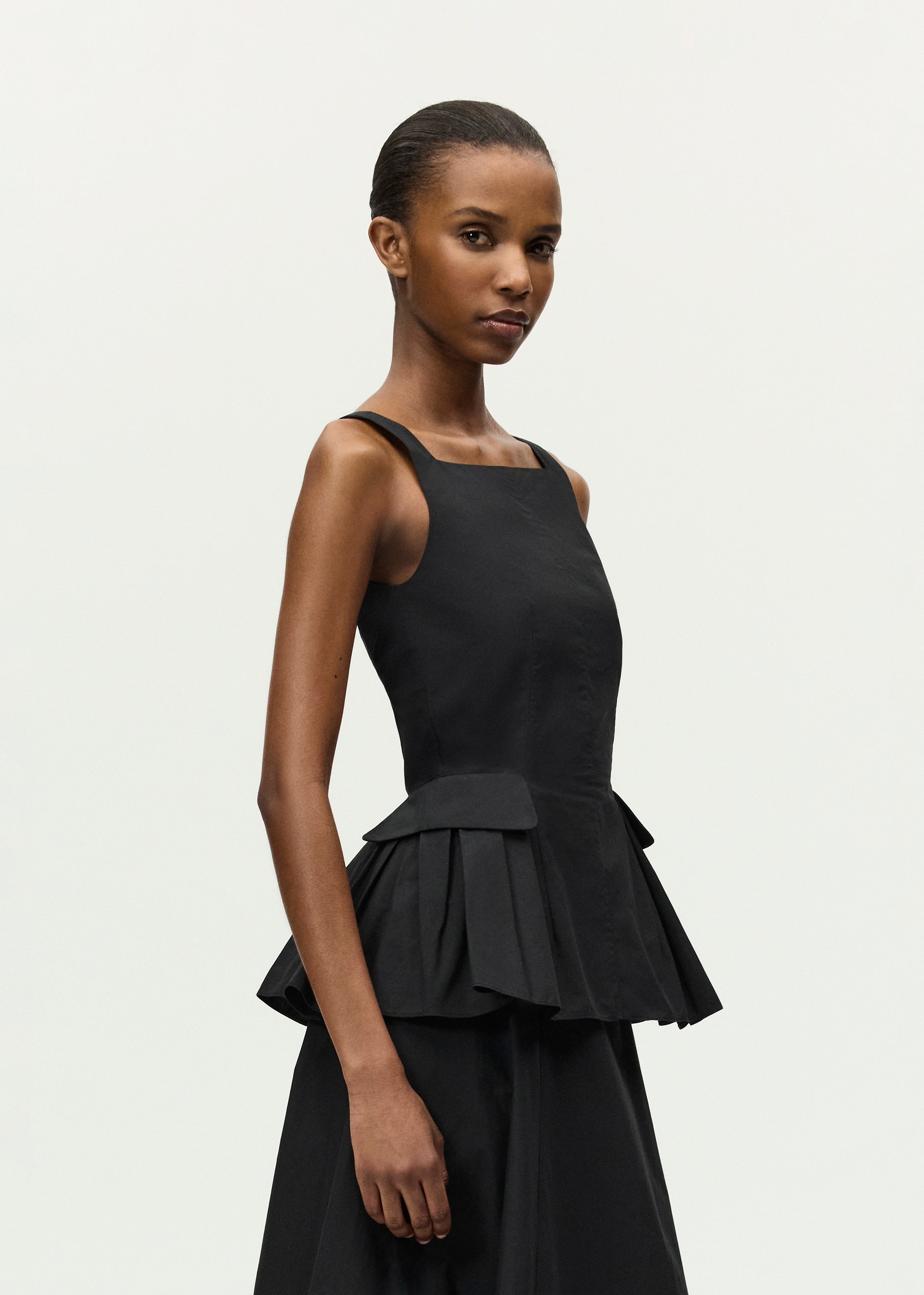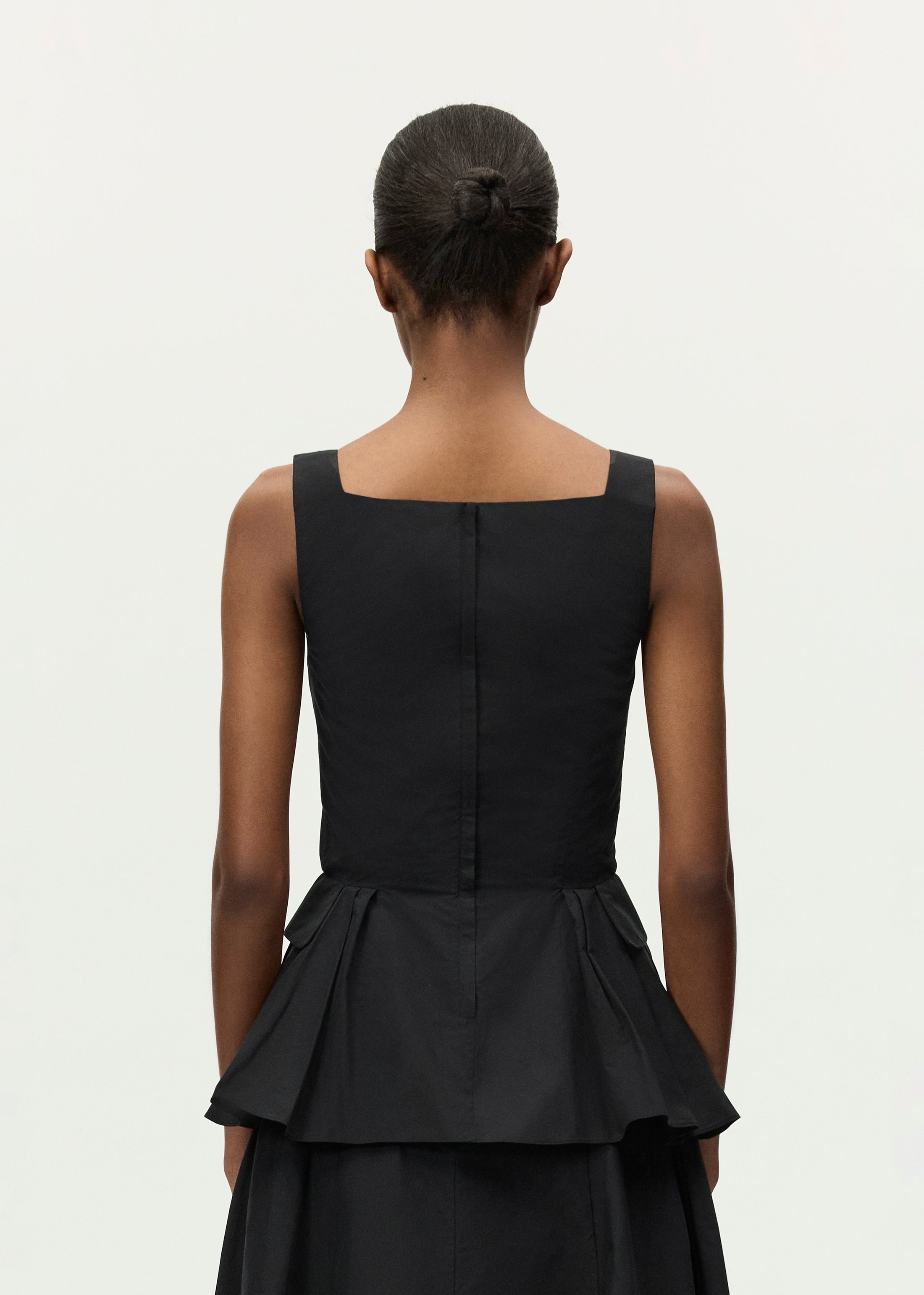 Tailored from structured cotton poplin, the Soleil Top features a sleek square neckline and feminine peplum. Hand pleats and pockets add an elegant finish to its waistline detail. Pair it with the Rene Skirt for a coordinated look.
